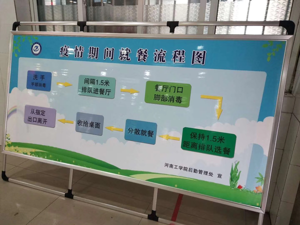 43.在就餐場所廣泛張貼疫情防控宣傳指南、就餐須知,引導(dǎo)師生掌握衛(wèi)生的就餐方式。
